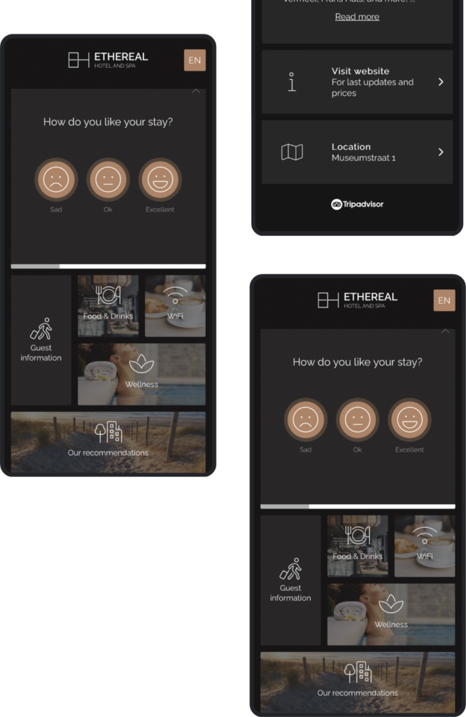 Connect 3.0 est intégré à Tripadvisor. L'hôtelier doit seulement fournir l'emplacement et le nom de l'attraction. Dans la fonction de recherche, les attractions sont affichées. Les informations Tripadvisor (avec des liens éventuels) sont affichées dans l'application Web ; naturellement dans la charte graphique de l'application Web.