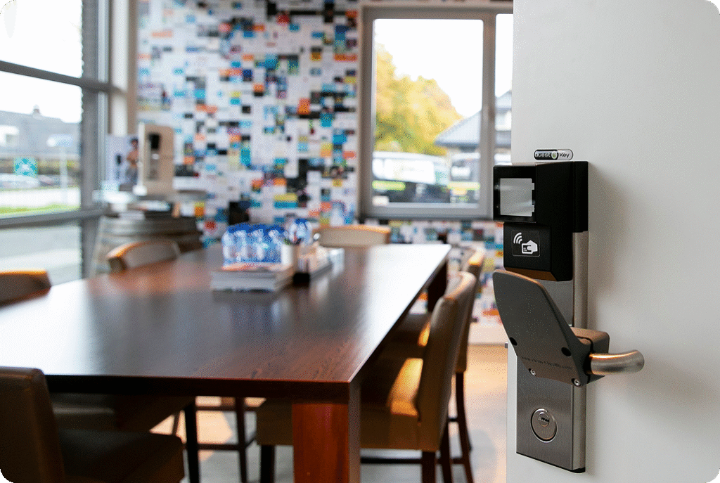 Met de slimme toegangsoplossingen van Hotek verhoog je de veiligheid en efficiëntie op de werkvloer. Onze deursloten bieden gecontroleerde toegang voor medewerkers en bezoekers, zonder gedoe. Ideaal voor moderne en flexibele werkomgevingen.